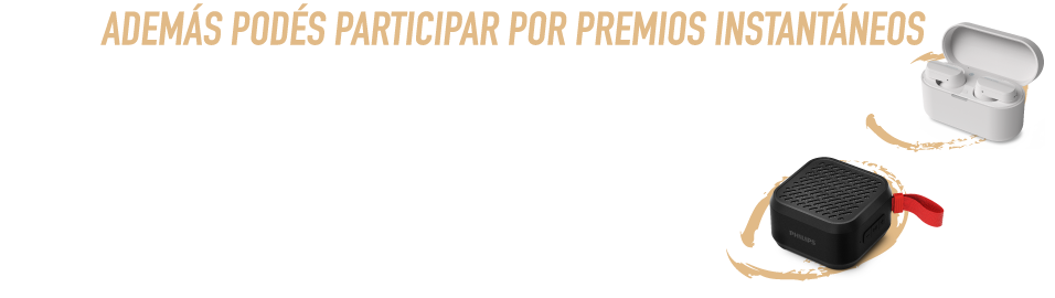8. Mediante los Sorteos Inmediatos se pondrán en juego: (a) veintidós (22) auriculares TWS, marca PHILIPS, modelo TAT3508WT/00 (“Auricular/es”) y (b) veintidós (22) parlantes, marca PHILIPS, modelo TAS1000B/00 (“Parlante/s” y junto con los “Auriculares”, “Premio/s Inmediato/s”). En las provincias de Mendoza y Salta se asignarán mediante los Sorteos Inmediatos, como máximo, un (1) Auricular y un (1) Parlante, en cada una de ellas.